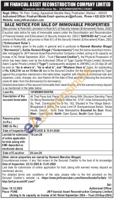 All That Piece And Parcel Of Land Along With Structure Standing There On Being Residential Property Milkat No. 3/187, Area Admeasuring 800 Sq. Feet, Cosntructed On Sr No. 162, Situated in The Village Bahuli -Bhagatwadi & Within The Local Limit Of Grampanchayat Bahuli, Taluka Havel, District Pune State Maharashtra Bounded As East- Road, West-Open Space, North- Open Space, South-Open Space