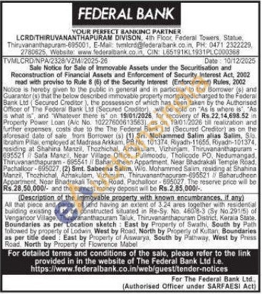 All that piece and parcel of of land having an extent of 3.24 ares together with residential building existing or to be constructed situated in Re-Sy. No. 46078-3 (Sy No.293/5) of Vengancor Village, Thiruvananthapuram Taluk. Thiruvananthapuram District, Kerala State. Boundaries as per Location sketch East by Property of Swathi, South by Path followed by property of Lodwin, West by Road, North by Properly of Kuttan, Boundaries as per title deed East by Property of Aiswarya, South by Pathway, West by Press Road. North by Property of of Flowrence Mabel