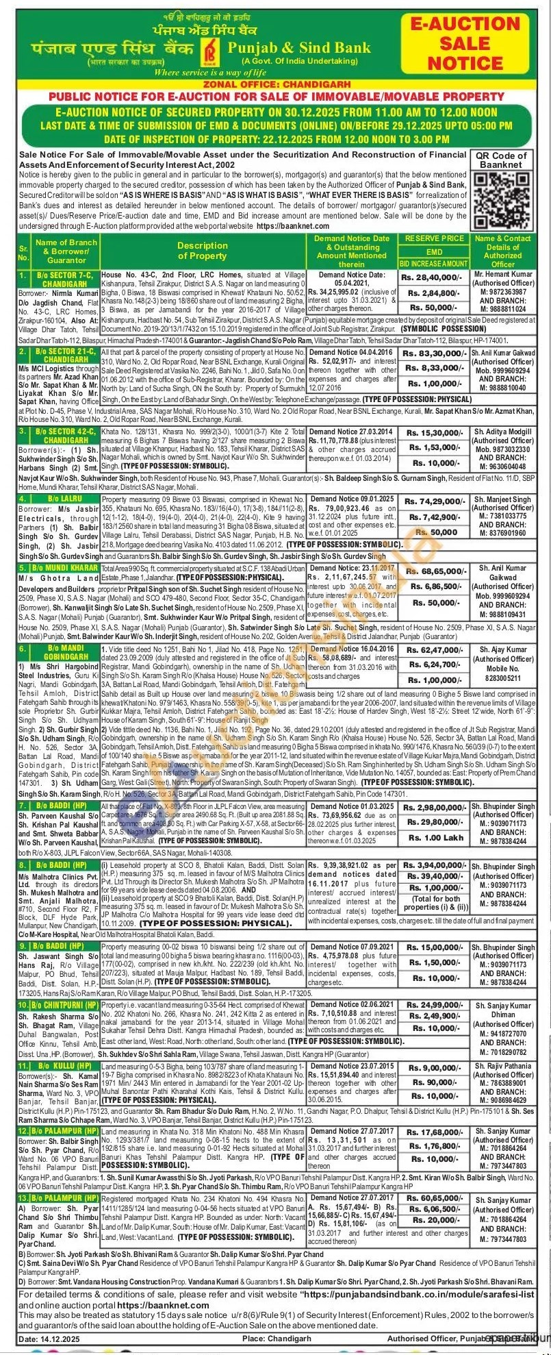 Sh. Bhupinder Singh (Authorised Officer) Μ.: 9039071173 AND BRANCH: Μ.: 9878384244