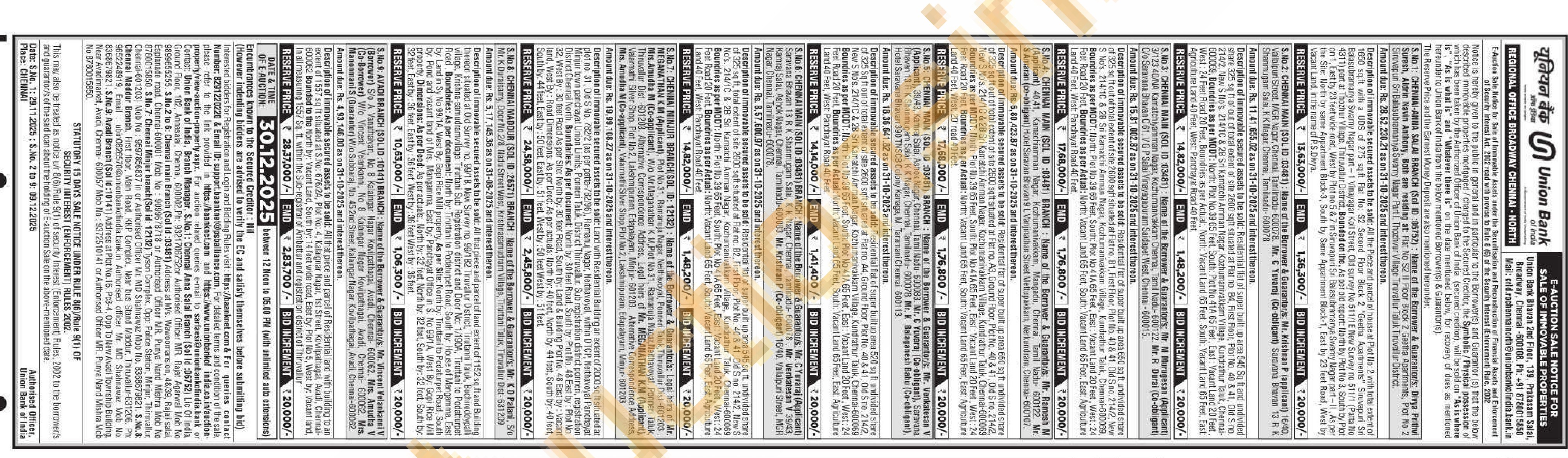 Description of immovable secured assets to be sold: All the Piece and parcel of house at Plot No: 2 with total extent of 1650 sq.ft with a UDS of 275 sq.ft Flat No: S2 Second Floor Block 2 "Geetha Apartments" Siruvapuri Sri Balasubramanya Swamy Nagar part-1 Vinayagar Koil Street, Old survey No 511/1E New Survey no 511/1 (Patta No 4311) part at Thozhur Village, Thiruvallur District, Bounded on the, As per old report: North by Plot No 3, South by Plot on 1, East by 23 feet wide road, West by Plot no 5 & 7 in Siruvapuri Sri Balasubramanya Swamy Nagar part-II, As per the Site: North by same Appartment Block-3, South by Same Appartment Block-1, East by 23 feet Road, West by Vacant Land, in the name of P.S.Divya.