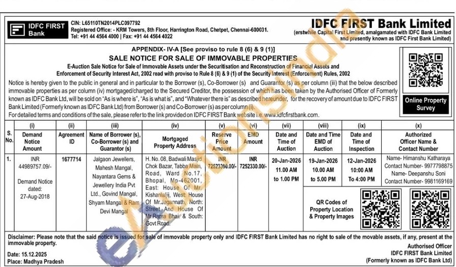 H. No. 08, Badwali Masjid Chok Bazar, Tabba Main, Road, Ward No.17. Bhopal, Mp-462001, East: House Of Mr. Kishanlaljij, West: House Of Mr.Jagannath, North: Street And House Of Mr.Rama Bhai. & South: Govt Road.