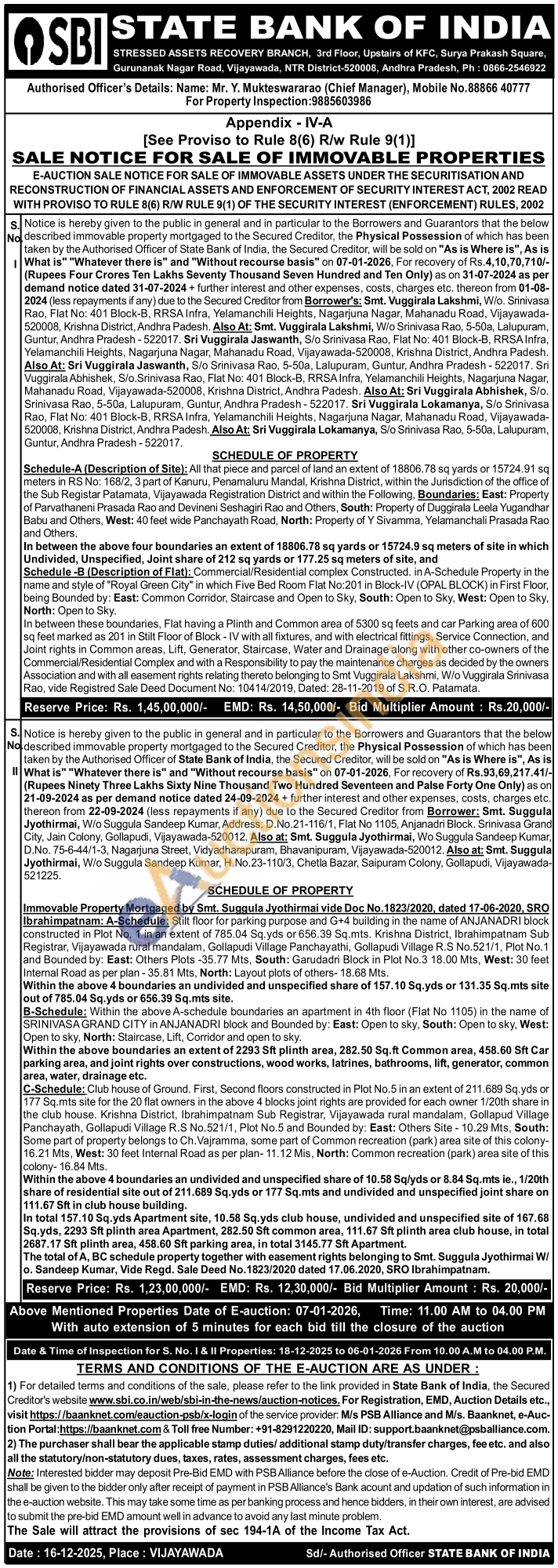 Stilt floor for parking purpose and G+4 building in the name of ANJANADRI block constructed in Plot No. 1 in an extent of 785.04 Sq.yds or 656.39 Sq.mts. Krishna District, Ibrahimpatnam Sub Registrar, Vijayawada rural mandalam, Gollapudi Village Panchayathi, Gollapudi Village R.S No.521/1, Plot No.1 and Bounded by: East: Others Plots -35.77 Mts, South: Garudadri Block in Plot No.3 18.00 Mts, West: 30 feet Internal Road as per plan-35.81 Mts, North: Layout plots of others- 18.68 Mts