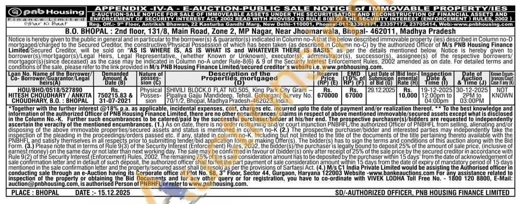 SHIVILI BLOCK, O FLAT NO.505, King Park City Gram -Pipaliya Gajju Mandideep, Tehsil. Goharganj Survey No. 70/1/2, Bhopal, Madhya Pradesh-462023, India.