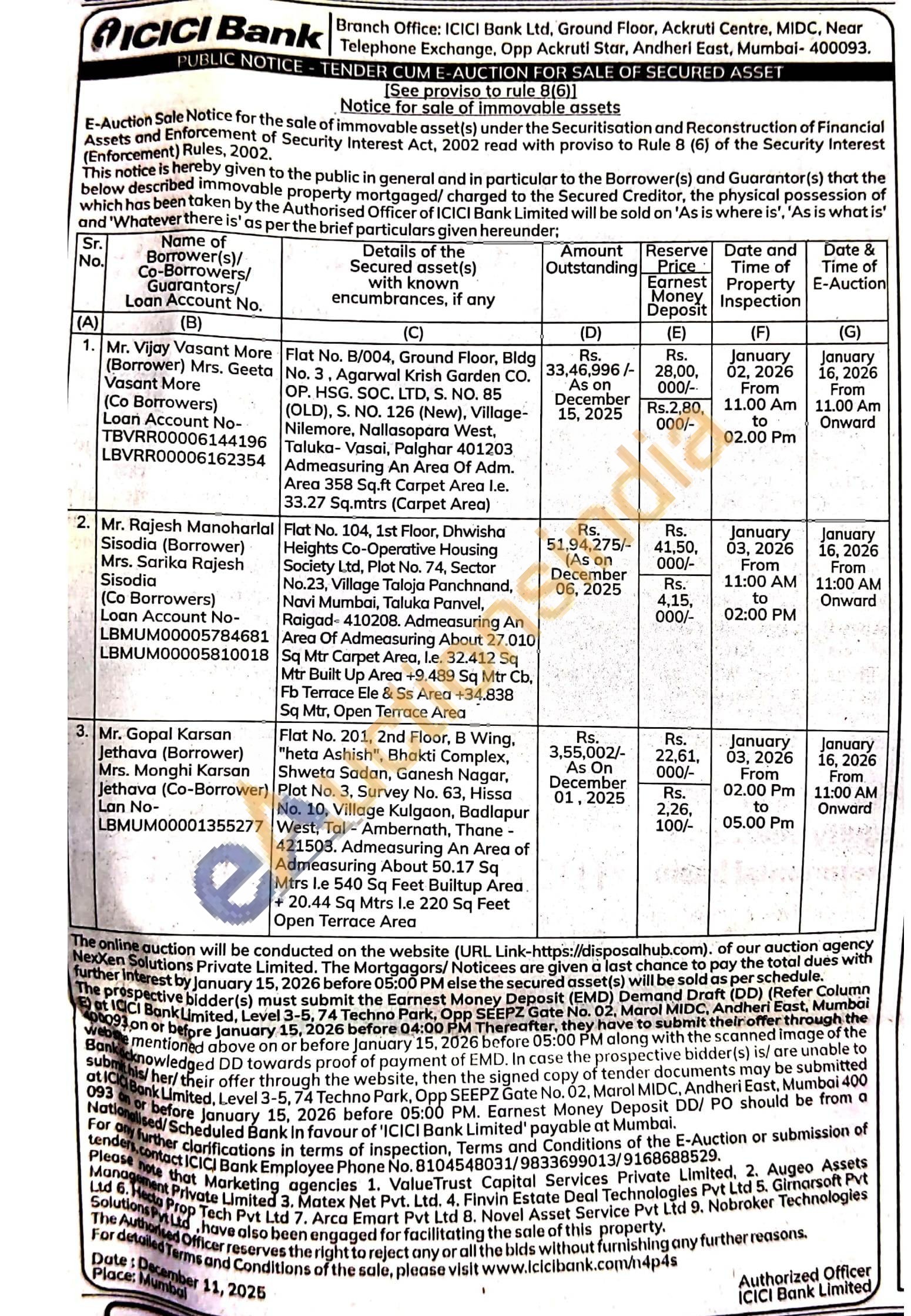 Flat No. B/004, Ground Floor, Bldg No. 3, Agarwal Krish Garden CO. OP. HSG. SOC. LTD, S. NO. 85 (OLD), S. NO. 126 (New), Village-Nilemore, Nallasopara West, Taluka- Vasai, Palghar 401203 Admeasuring An Area Of Adm. Area 358 Sq.ft Carpet Area I.e. 33.27 Sq.mtrs (Carpet Area)