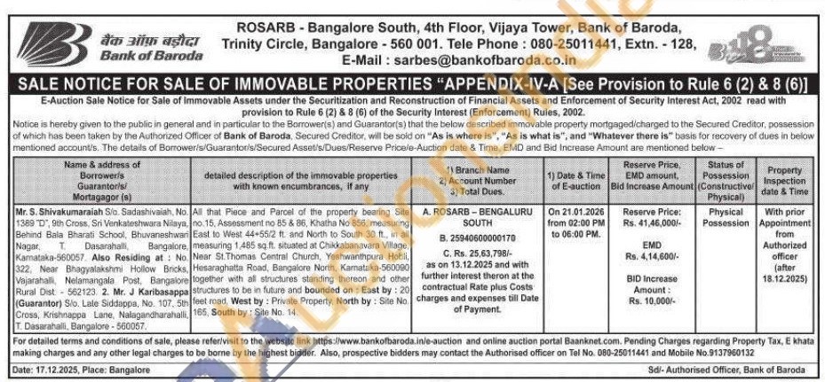 All that Piece and Parcel of the property bearing Site no. 15, Assessment no 85 & 86, Khatha No 656, measuring East to West 44-55/2 ft. and North to South 30 ft., in all , measuring 1,485 sq.ft. situated at Chikkabanavara Village, Near St. Thomas Central Church, Yeshwanthpura Hobli, Hesaraghatta Road, Bangalore North, Kamataka-560090 together with all structures standing thereon and other structures to be in future and bounded on: East by: 20 feet road. West by: Private Property, North by: Site No. 165, South by: Site No. 14.