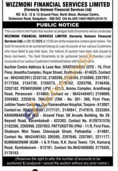 Wizzmoni Financial Services Limited Gold Auctions Auction in Bengaluru