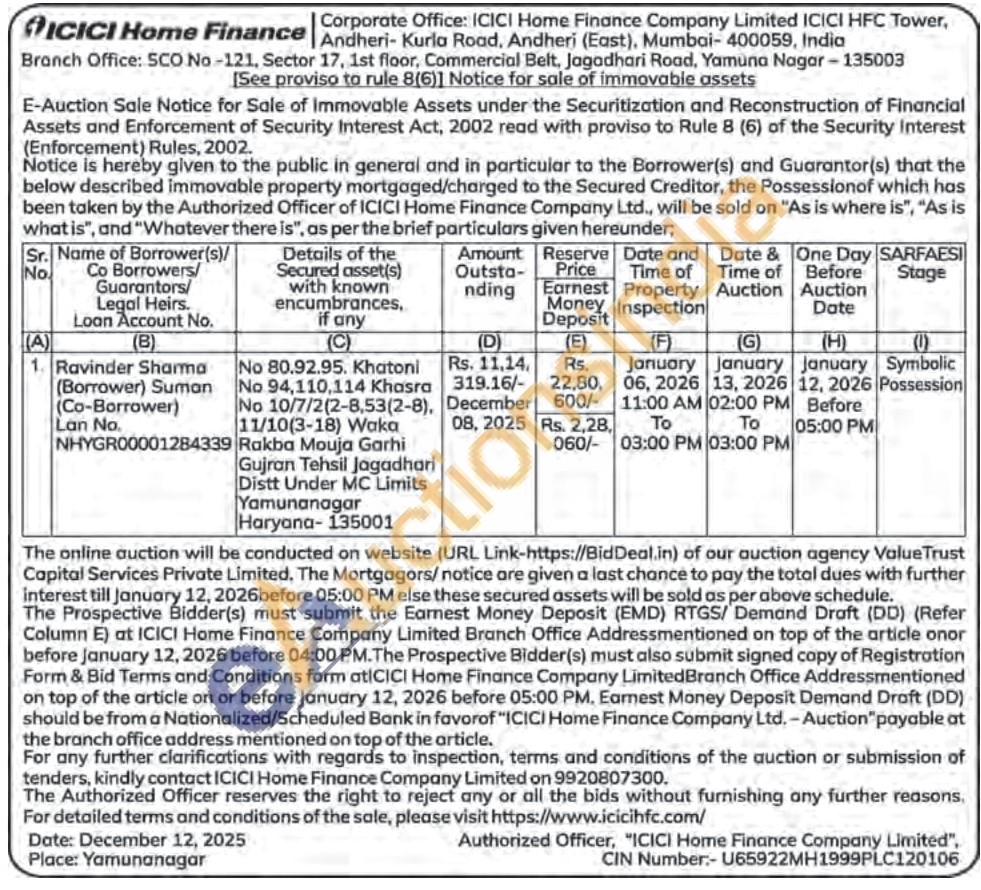 No 80.92.95. Khatoni No 94,110,114 Khasra No 10/7/2(2-8,53(2-8), 11/10(3-18) Waka Rakba Mouja Garhi Gujran Tehsil Jagadhari Distt Under MC Limits Yamunanagar Haryana-135001
