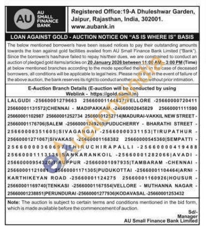 AU Small Finance Bank Gold Auctions Auction in Vellore