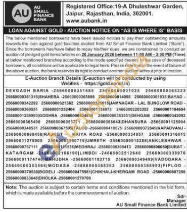 AU Small Finance Bank Gold Auctions Auction in Jaipur