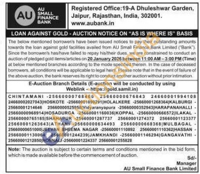 AU Small Finance Bank Gold Auctions Auction in Jaipur