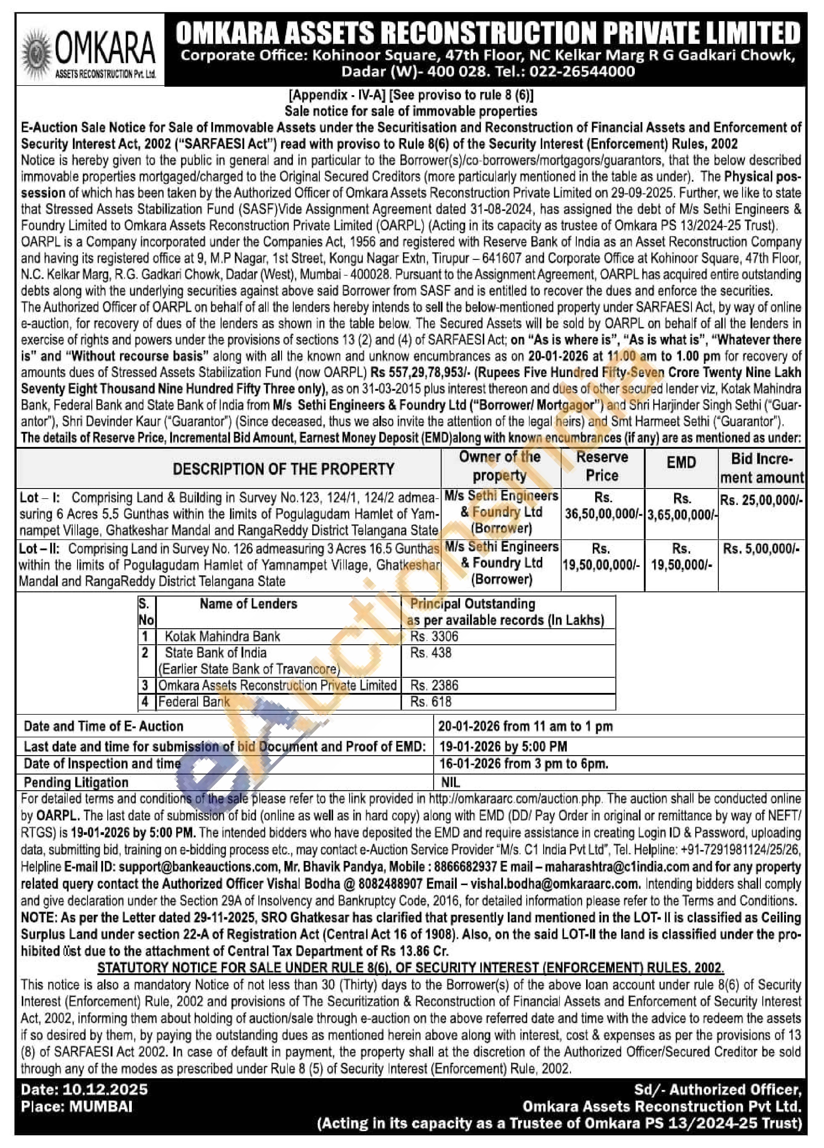 Lot-II: Comprising Land in Survey No. 126 admeasuring 3 Acres 16.5 Gunthas within the limits of Pogulagudam Hamlet of Yamnampet Village, Ghatkeshar Mandal and RangaReddy District Telangana State