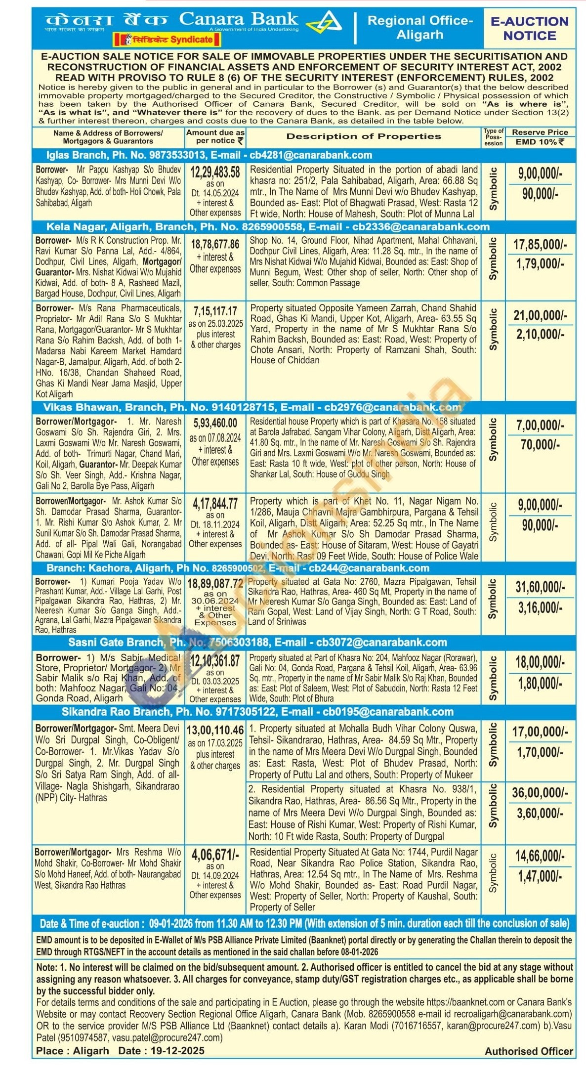 Property which is part of Khet No. 11, Nagar Nigam No. 1/286, Mauja Chhavni Majra Gambhirpura, Pargana & Tehsil Koil, Aligarh, Distt Aligarh, Area: 52.25 Sq mtr., In The Name of Mr Ashok Kumar S/o Sh Damodar Prasad Sharma, Bounded as- East: House of Sitaram, West: House of Gayatri Devi, North: Rast 09 Feet Wide, South: House of Police Wale