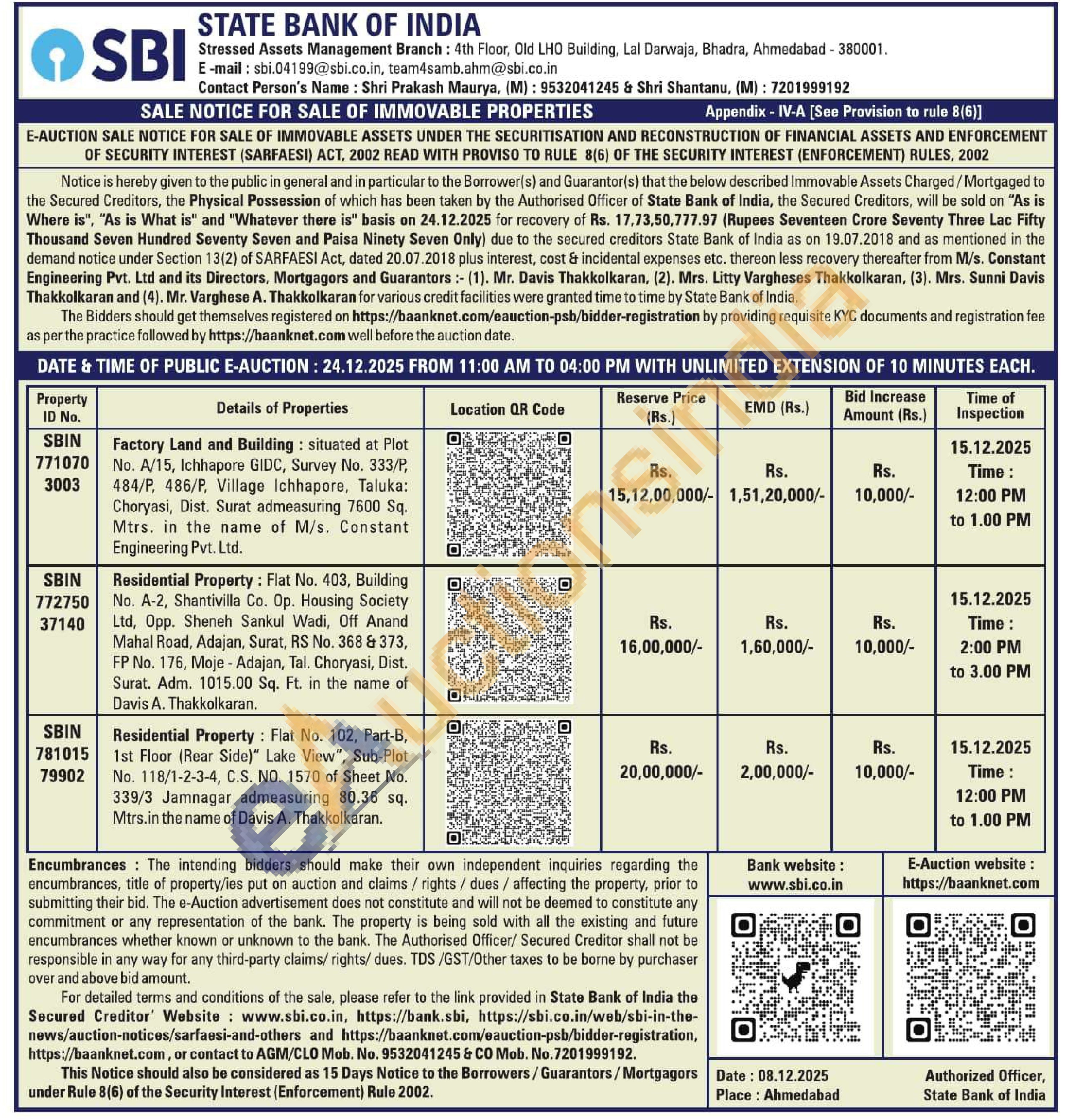 Residential Property: Flat No. 102, Part-B, 1st Floor (Rear Side)" Lake View", Sub-Plot No. 118/1-2-3-4, C.S. NO. 1570 of Sheet No. 339/3 Jamnagar admeasuring 80.36 sq. Mtrs.in the name of Davis A. Thakkolkaran