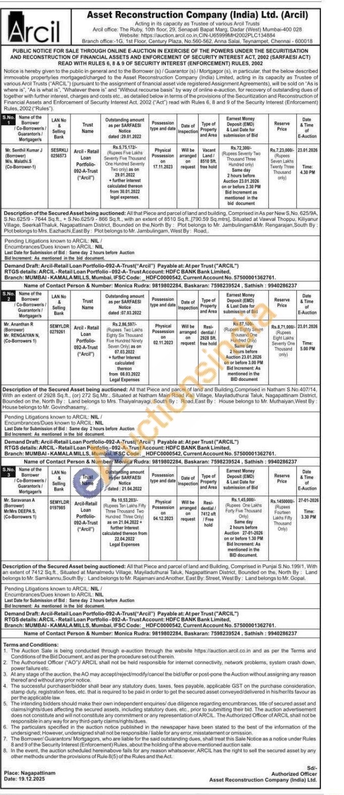 3) All that Piece and parcel of land and Building, Comprised in Punjai S.No. 199/1, With an extent of 7412 Sq.ft., Situated at Manalmedu Village, Mayiladuthurai Taluk, Nagapattinam District, Bounded on the, North By: Land belongs to Mr. Samikannu, South By: Land belongs to Mr. Rajamani and Another, East By: Street, West By: Land belongs to Mr. Gopal