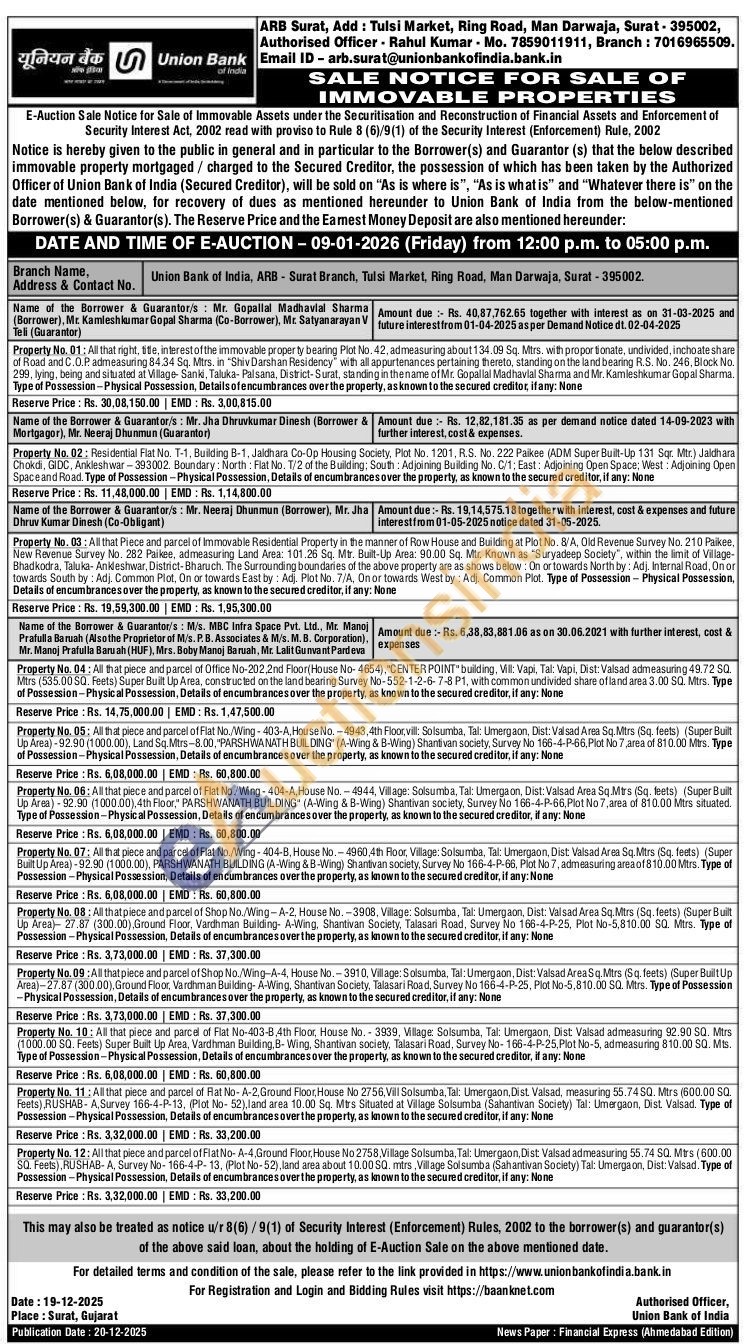 Contact No : Rahul Kumar Mo. 7859011911, 7016965509 /Email ID - arb.surat@unionbankofindia.bank.in