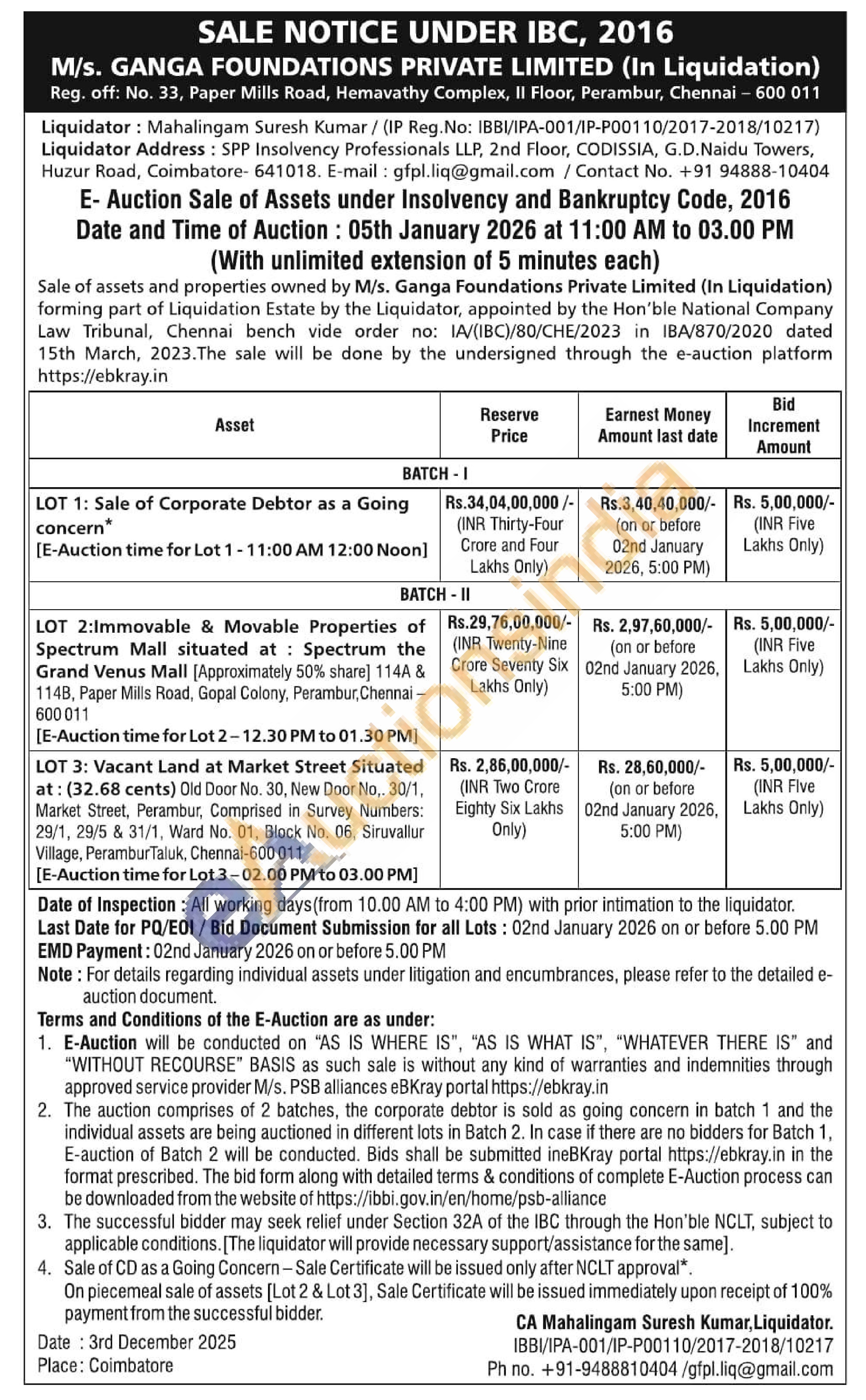 LOT 3: Vacant Land at Market Street Situated at: (32.68 cents) Old Door No. 30, New Door No,. 30/1, Market Street, Perambur, Comprised in Survey Numbers: 29/1, 29/5 & 31/1, Ward No. 01, Block No. 06, Siruvallur Village, PeramburTaluk, Chennai-600011