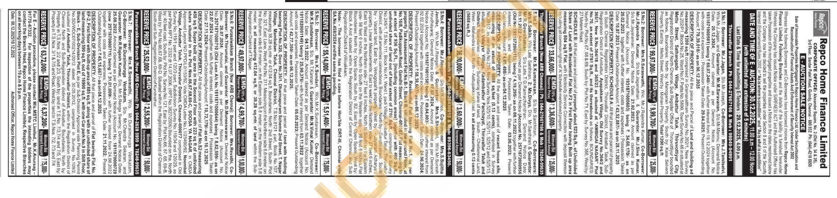 DESCRIPTION OF PROPERTY: All the piece and Parcel of Land and building ad measuring 1200 sq.ft comprised in Gramanattham Survey No. 202/1, New Survey No. 202/P1. Block No.25, Ward No:F, Patta No. 5899, Town Survey No.46 in situated at Mettu Street, Sathangadu Village, Ambattur Taluk, Thiruvottiyur City, Registration District of North Chennai, Sub Register Office of Thiruvottiyur bounded as follows, Boundaries: North by: Manogaran Property, South by: Kalai Selvem Property. East by: Mettu Street, West by: Mohan Property. Total 1200 sq.ft