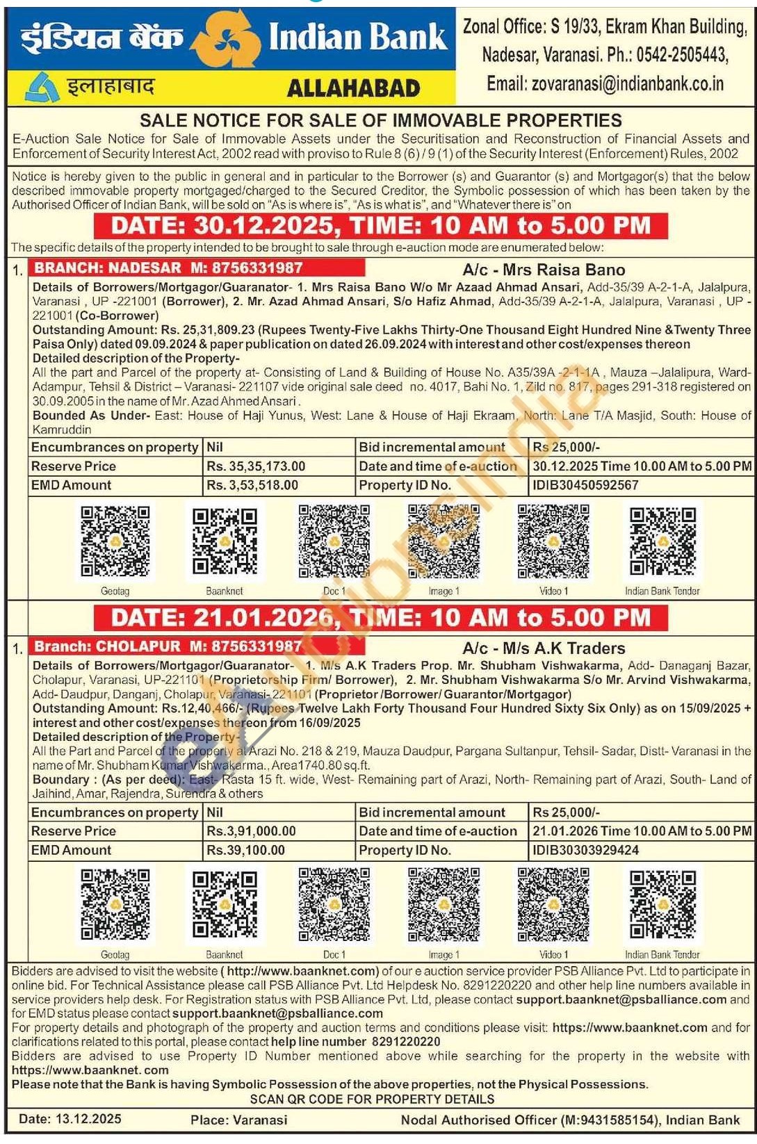 Detailed description of the Property- All the Part and Parcel of the property at Arazi No. 218 & 219, Mauza Daudpur, Pargana Sultanpur, Tehsil-Sadar, Distt-Varanasi in the name of Mr. Shubham Kumar Vishwakarma., Area1740.80 sq.ft. Boundary: (As per deed): East- Rasta 15 ft. wide, West- Remaining part of Arazi, North- Remaining part of Arazi, South- Land of Jaihind, Amar, Rajendra, Surendra & others