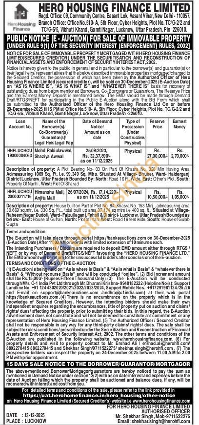 Description of property: A Plot Bearing No-03 On Part Of Khasra No. 328 Min Having Area Ad measuring 1069 Sq, Ft. Le. 99.349 Sq. Mtrs. Situated At Village-Bhuher, Ward- Haiderganj District Lucknow, Uttar Pradesh Bounded By: North: Road 16 Ft. Wide, East: Other's Plot. South: Property Of Nanhi, West: Piot Of Sharad