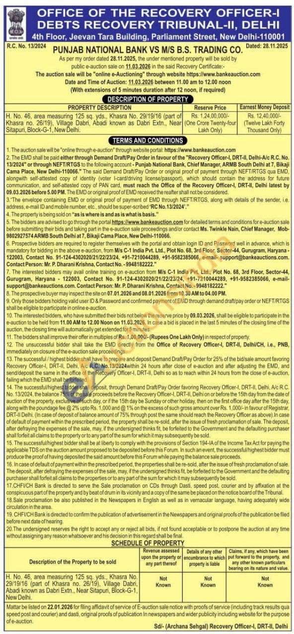 H. No. 46, area measuring 125 sq. yds., Khasra No. 29/19/16 (part of Khasra no. 26/19), Village Dabri, Abadi known as Dabri Extn., Near Sitapuri, Block-G-1, New Delhi