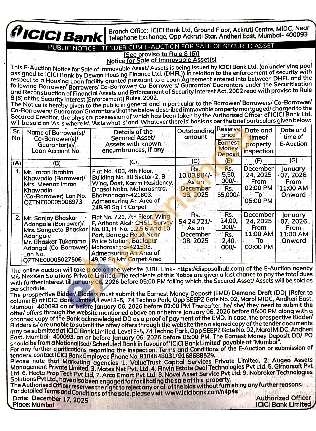 Flat No. 721, 7th Floor, Wing F, Arihant Aksh CHSL, Survey No. 81, H. No. 1,2,5,6 And 10 Part, Barrage Road Near Police Station, Badlapur Maharashtra-421503. Admeasuring An Area of 49.08 Sq Mtr Carpet Area