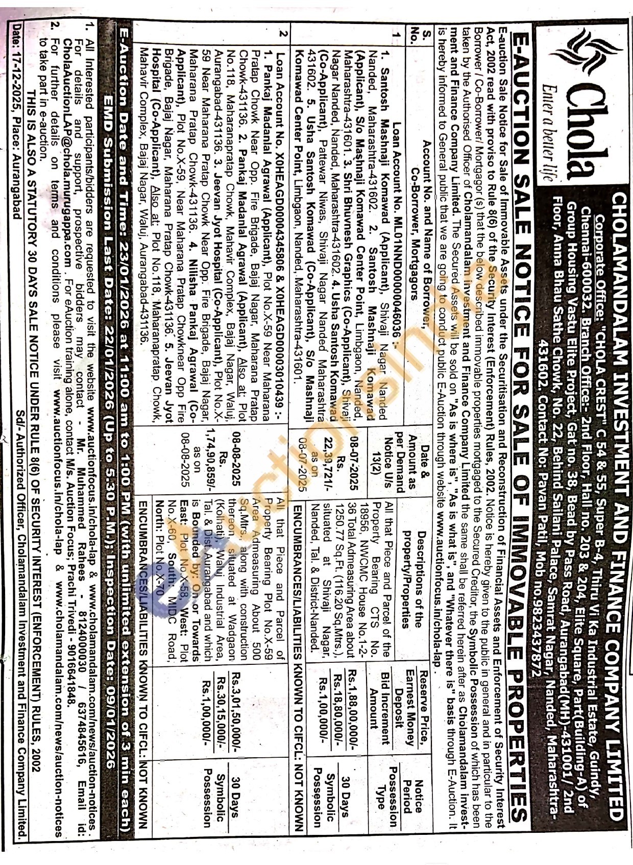 All that Piece and Parcel of the Property Bearing CTS No. 18956, NWCMC House No.1-2-36 Total Admeasuring Area about 1250.77 Sq. Ft. (116.20 Sq.Mtrs.), situated at Shivaji Nagar, Nanded, Tal. & District-Nanded