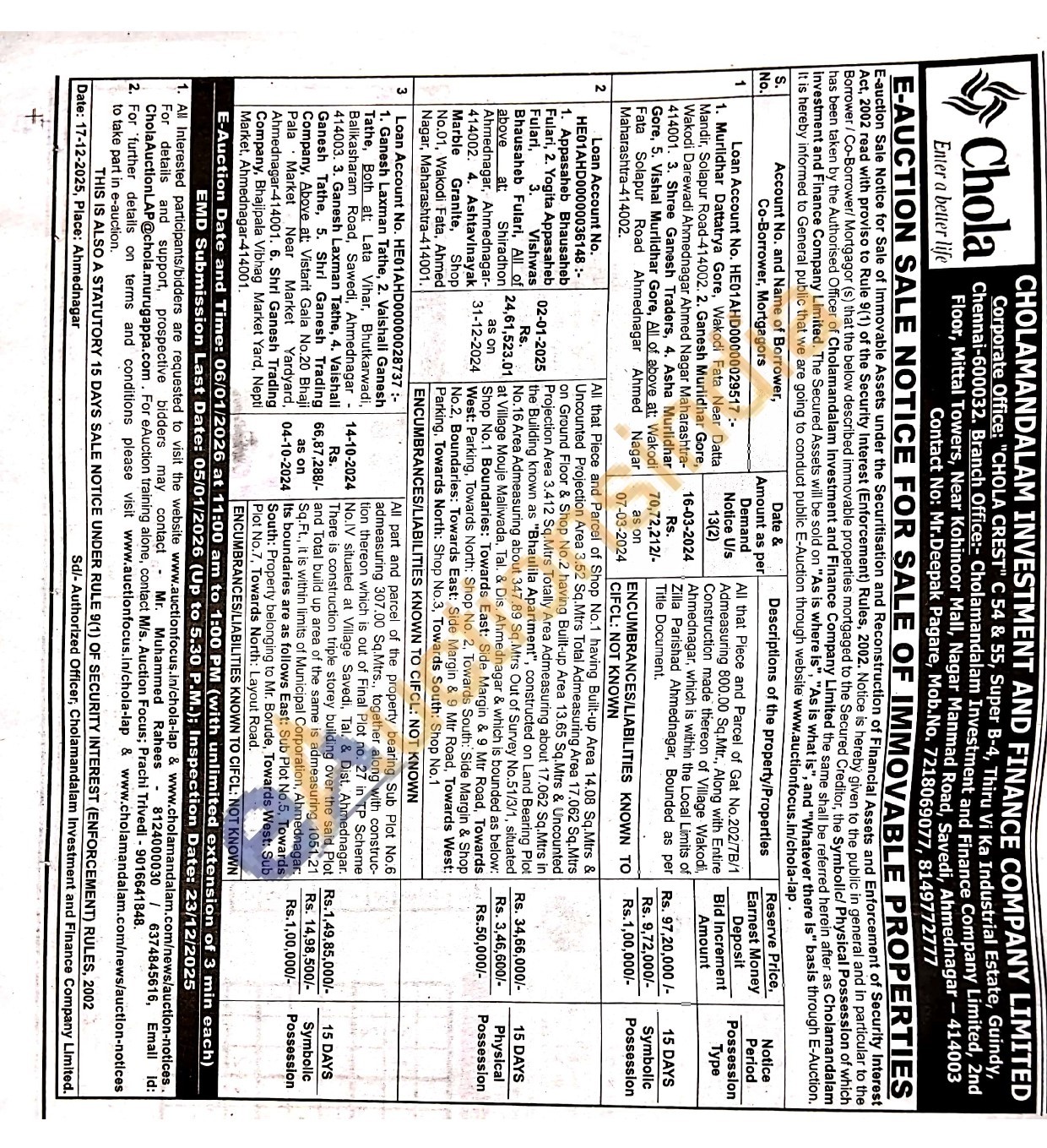 All that Piece and Parcel of Gat No.202/7B/1 Admeasuring 800.00 Sq.Mtr., Along with Entire Construction made thereon of Village Wakodi, Ahmednagar, which is within the Local Limits of Zilla Parishad Ahmednagar, Bounded as per Title Document