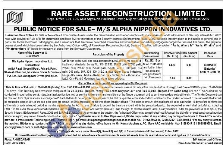 Lot 2: Only Plant & Machinery located in above address.