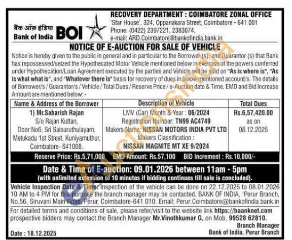contact the Branch Manager Mr.Vinothkumar G, on Mob. 99528