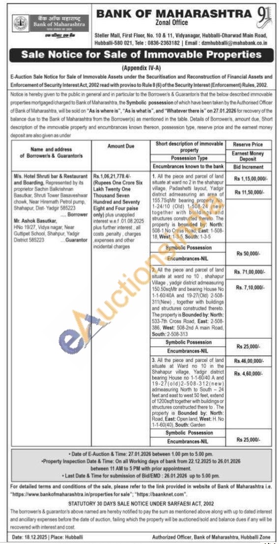 1. All the piece and parcel of land situate at ward no 2 in the shahaput village, Padashetti layout, Yadgir district admeasuring an area of 15575qMtr bearing property No. 1-24/10 (Old) 1-508-24 (new) together with buildings and structures constructed thereto The property is bounded by: North 508-1 No Cross Road, East: 1-508-18. West: 1-3-5 South: 1-3-5