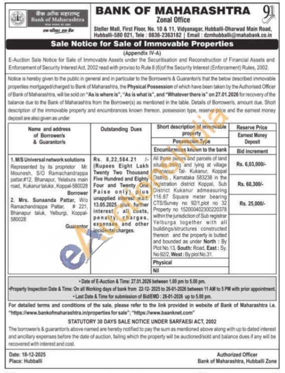 All those pieces and parcels of land situate being and lying at village Bhanapur, Tal- Kukanur, Koppal District, Kamataka 583238 in the registration district Koppal, Sub District Kukanur admeasuring 116.87 Square meter bearing CTS/Survey no 92/1 plot no 32 Property no 152000402300220378 within the jurisdiction of Sub registrar Yelburga together with all buildings/structures constructed thereon and the property is butted and bounded as under North: By Plot No.13, South: Road, East: Sy No 92/2, West: By plot No.31.