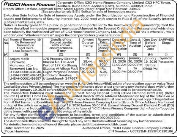 176 Property Bearing Khasra No 176 And Part of 177 Ka Bhaag Situated At Villoge Padli Gujjar Pargana Roorkee Haridwar Roorkee Uttarakhand-247667