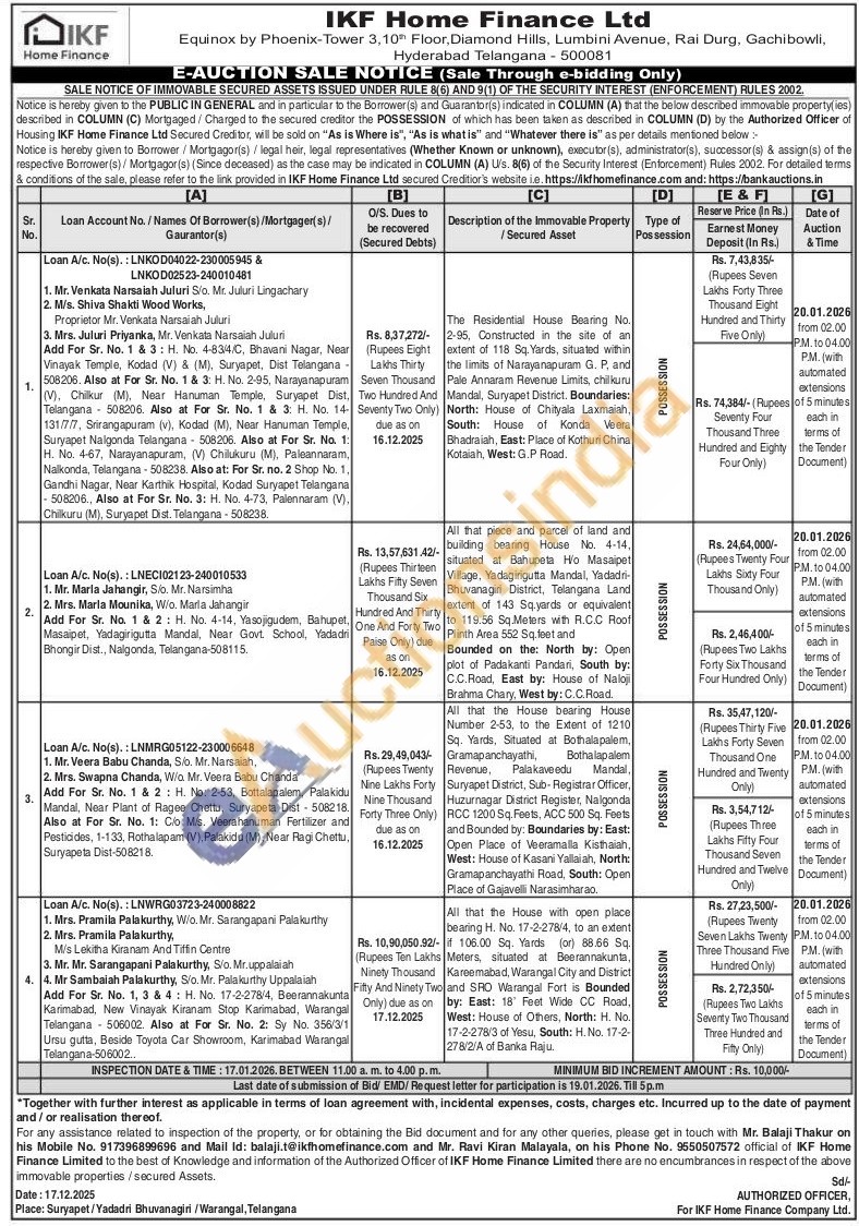 All that piece and parcel of land and building bearing House No. 4-14, situated at Bahupeta Ho Masaipet Village, Yadagirigutta Mandal, Yadadri-Bhuvanagiri District, Telangana Land extent of 143 Sq.yards or equivalent to 119.56 Sq.Meters with R.C.C Roof Plinth Area 552 Sq.feet and