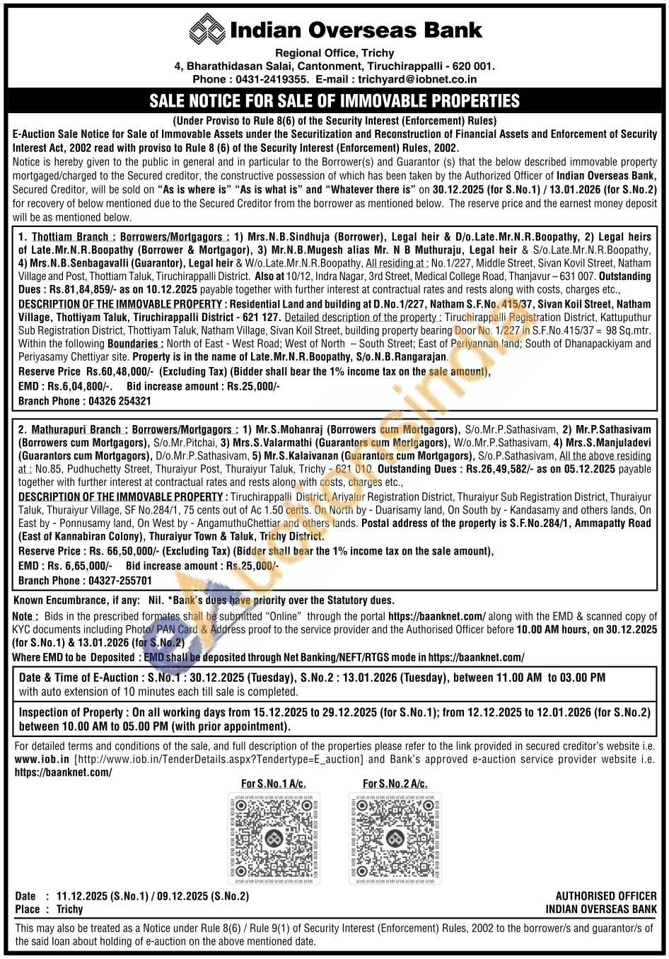 DESCRIPTION OF THE IMMOVABLE PROPERTY: Tiruchirappalli District, Ariyalur Registration District, Thuraiyur Sub Registration District, Thuraiyur Taluk, Thuraiyur Village, SF No.284/1, 75 cents out of Ac 1.50 cents. On North by Duarisamy land, On South by Kandasamy and others lands, On East by Ponnusamy land, On West by Angamuthu Chettiar and others lands. Postal address of the property is S.F.No.284/1, Ammapatty Road