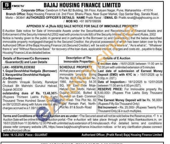 All that piece and parcel of the immovable property Being Plot No. 82 P Halvad Sur No. SQ. Mtr East Side Moje-1980. Admeasuring 54.35 Halvad Dist. Morbi, Halvad, Gujarat-363330, Butted & Bounded on East- Common Plot. West- This Plot No. 82 Paiky Remain Part, North-Plot No. 81 & South-Road