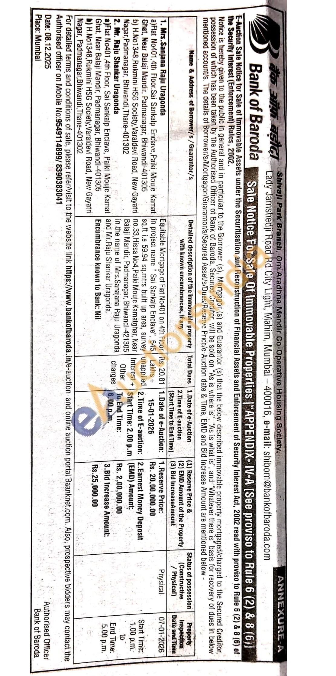 Equitable Mortgage of Flat No401 on 4th Floor in project name" Sai Sankalp Enclave", 645