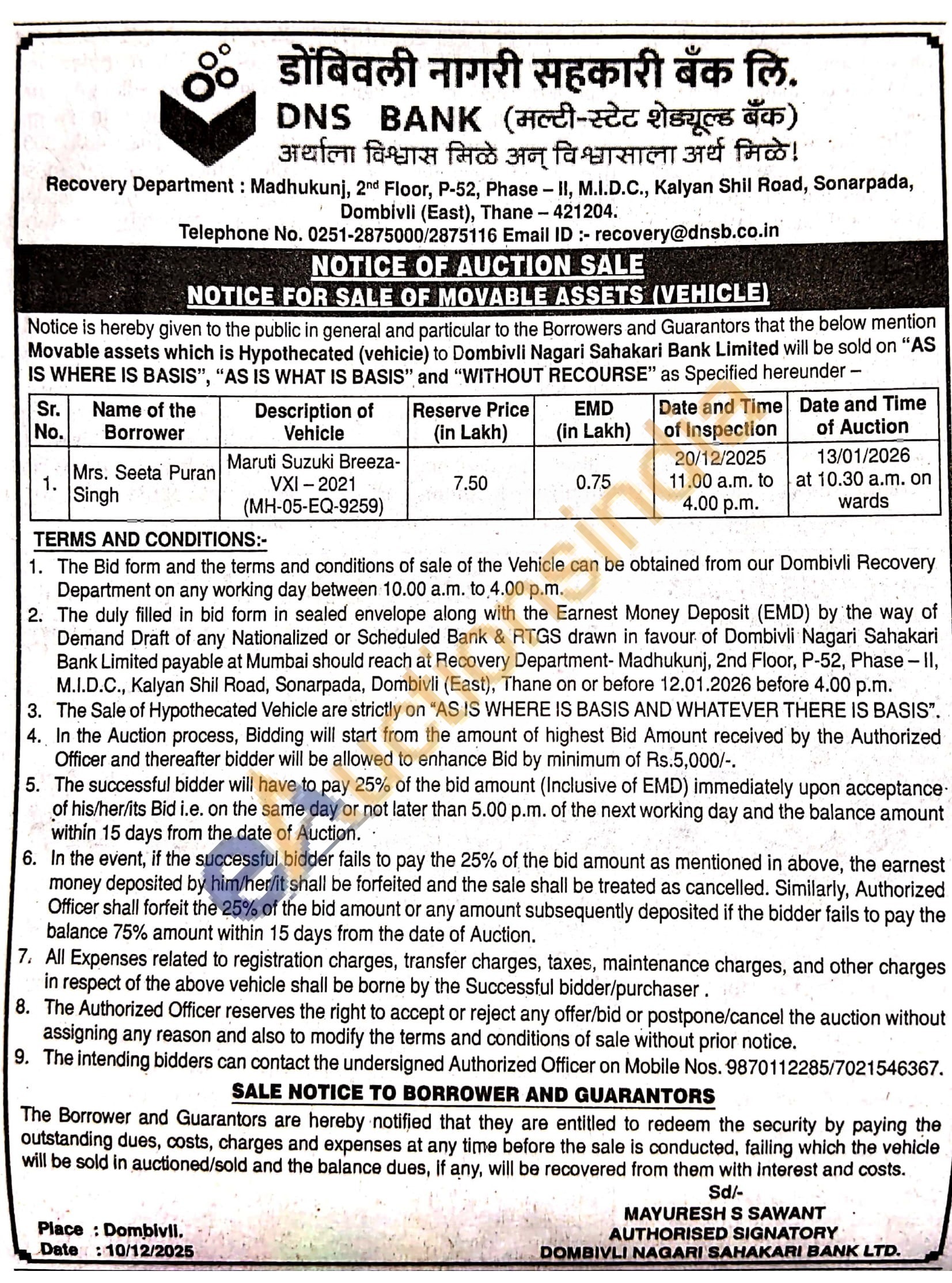 Authorized Officer on Mobile Nos. 9870112285/7021546367