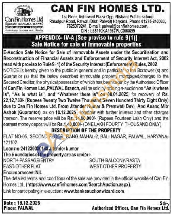 FLAT NO-05, SECOND FLOOR, RANG MAHAL-2, BALI NAGAR, PALWAL, HARYANA-121102