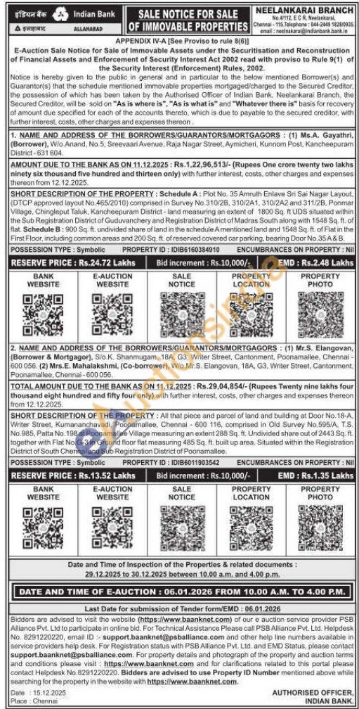 2) All that piece and parcel of land and building at Door No. 18-A Writer Street, Kumananchavadi, Poonamallee, Chennai-600 116, comprised in Old Survey No.595/A, T.S. No.985, Patta No. 198 at Poonamallee Village measuring an extent 288 Sq. ft. Undivided share out of 2443 Sq.ft. together with Flat No. G-3 in Ground floor flat measuring 485 Sq. ft. built up area. Situated within the Registration District of South Chennai and Sub Registration District of Poonamallee.