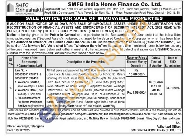 All that piece and parcel of the RCC Roof Residential House With Open Place As Measuring 784.00 Sq.yards Or 655.50 Sq. Meters Including Rec Roof House Plinth Are 885.00 Sq.fts Gi Sheet Roof Plinth Area 742.50 Sq.fts Bearing Gp House 3-13 (Old) 3-13/1 (New) Situated At Kohur Village Rayaparthy Mandal, Warangal District Within The Limits Of Gp Kathur, Revenue District Warangal Registration District Warangal, And It Is In The Jurisdiction of The Joint Sub Registrar, Wardhannapet, And Bounded By:- Boundaries: North: Grampanchayath Road, South: Agriculture Land of Thalla Mahender Reddy, East: House of Gade Yakalah, West: Way