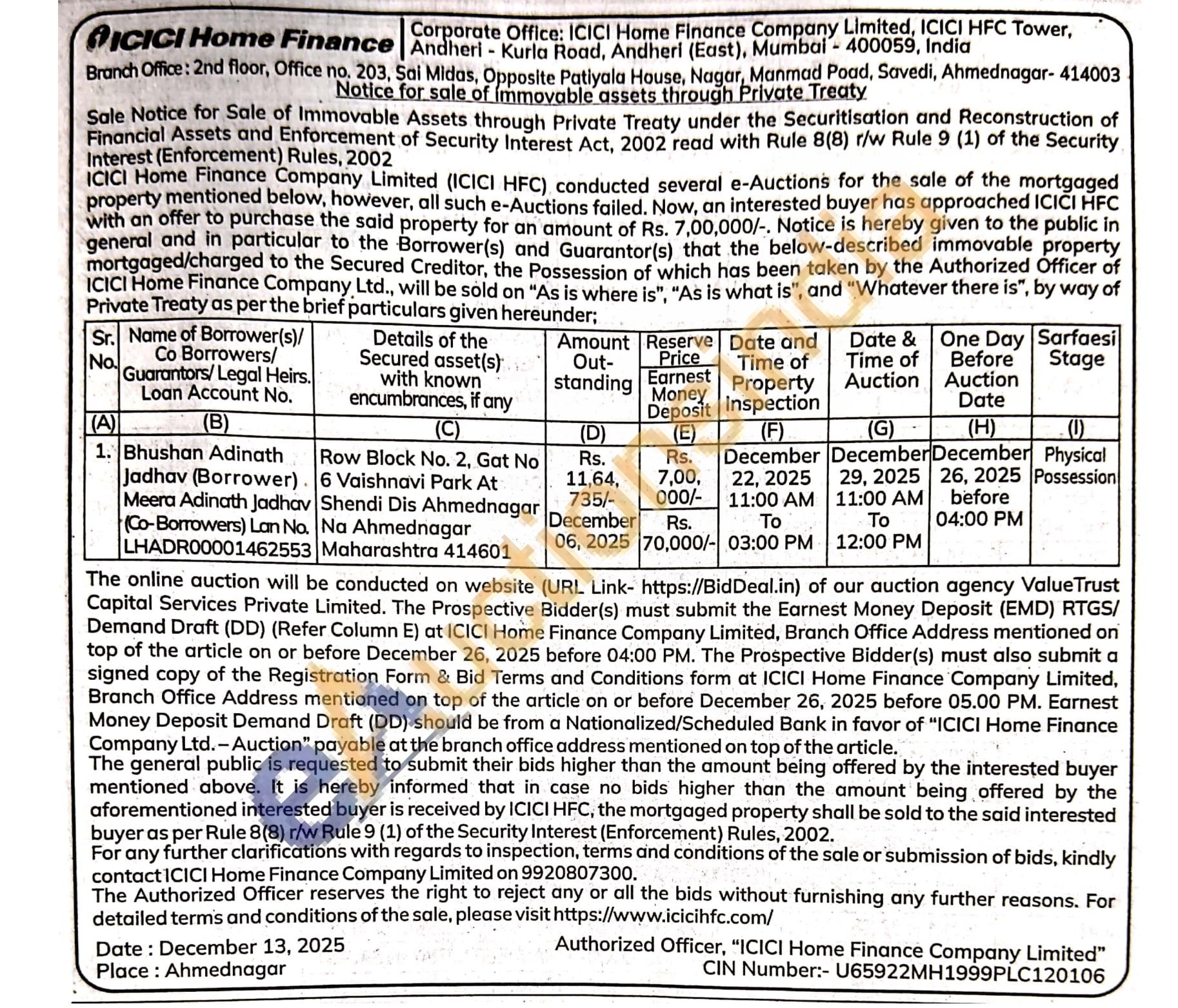 Row Block No. 2, Gat No 6 Vaishnavi Park At Shendi Dis Ahmednagar Na Ahmednagar Maharashtra 414601