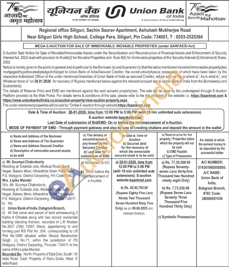 All that piece and parcel of land admeasuring 2 Katha 4 Chhatak along with two storied residential building standing thereon, recorded in L.R Khatian No.3627 (Old) 13581 (New), appertaining to and forming part RS Plot No. 554, corresponding to LR Plot No.1089 situated within Mouza Baramohan Singh, J.L No.71, within the jurisdiction of PS Matigara, District Darjeeling, Pincode: 734011 in the name of Mrs Lipika Mandal