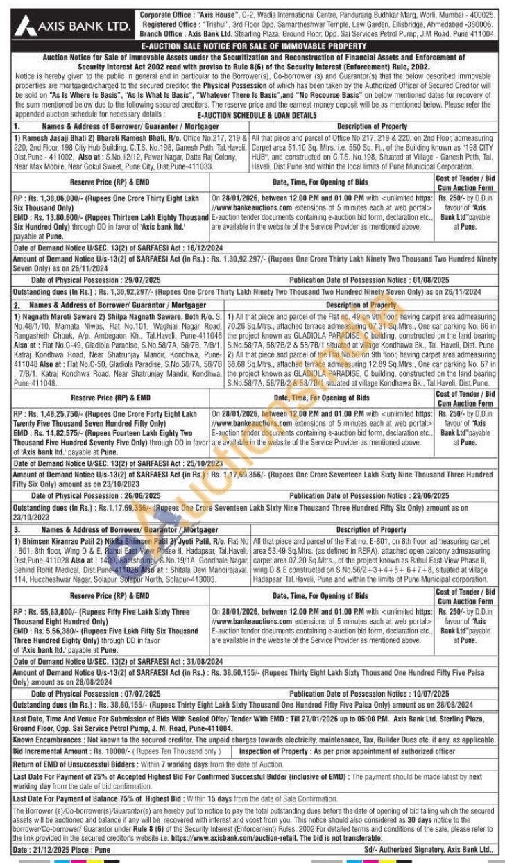 All that piece and parcel of Office No.217, 219 & 220, on 2nd Floor, admeasuring Carpet area 51.10 Sq. Mirs. Le 550 Sq. Ft, of the Building known as "198 CITY HUB, and constructed on C.TS. No.198, Situated at Village-Ganesh Peth, Tal Haveli, Dist. Pune and within the local limits of Pune Municipal Corporation,