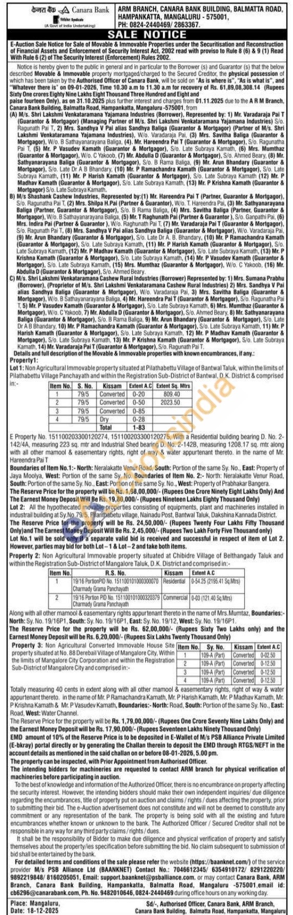 Non Agricultural Immovable property situated at Chibidre Village of Belthangady Taluk and within the Registration Sub-District of Mangalore Taluk, D.K. District