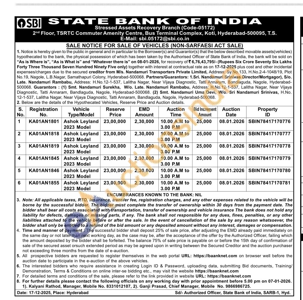 Vehicle Type/Model : Ashok Leyland 2023 Model