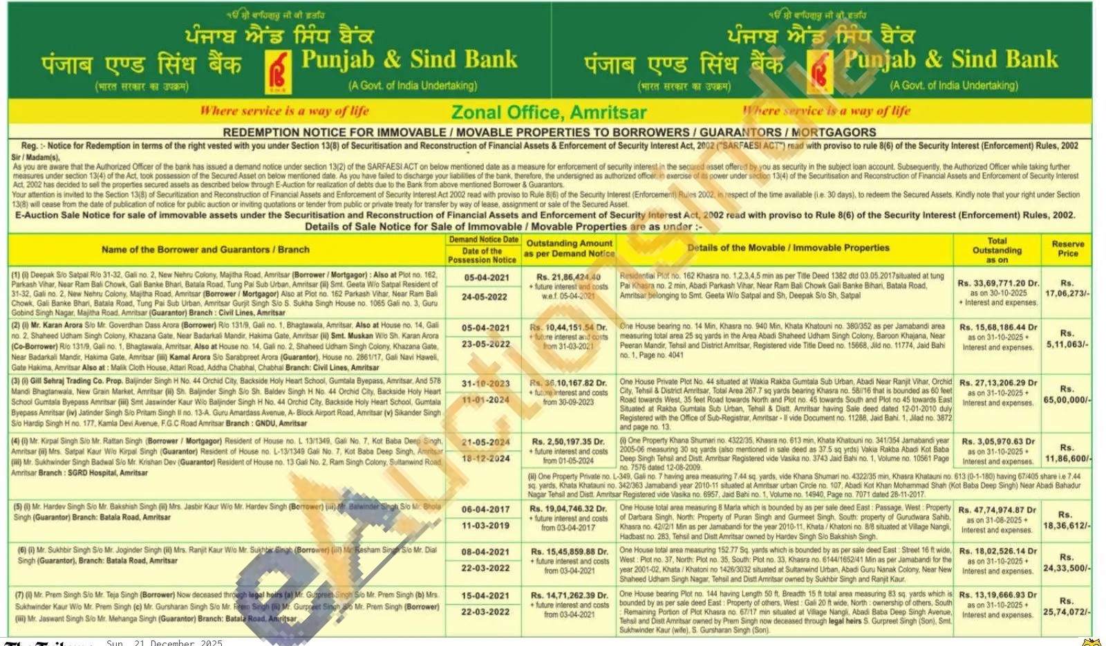 One House total area measuring 152.77 Sq yards which is bounded by as per sale deed East: Street 16 ft wide, West: Plot no. 37, North: Plot no. 35, South: Plot no. 33, Khasra no. 6144/1652/41 Min as per Jamabandi for the year 2001-02, Khata/Khatoni no 1426/3032 situated at Sultanwind Urban, Abadi Guru Nanak Colony, Near New Shaheed Udham Singh Nagar, Tehsil and Distt Amritsar owned by Sukhbir Singh and Ranjit Kaur.
