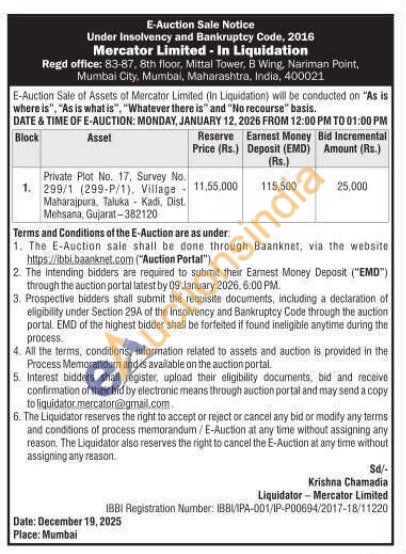Private Plot No. 17. Survey No. 299/1 (299-P/1), Village Maharajpura, Taluka Kadi, Dist. Mehsana, Gujarat-382120