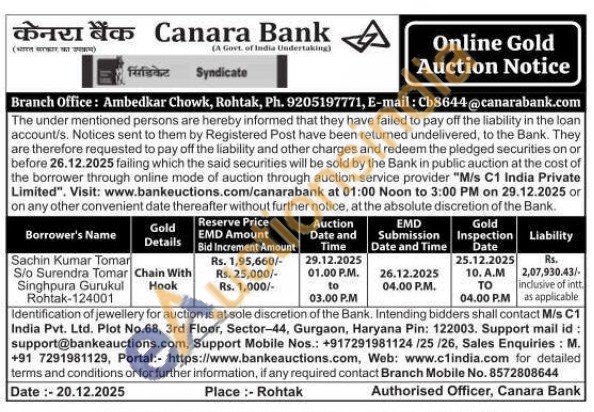 Canara Bank Gold Auctions Auction in Rohtak
