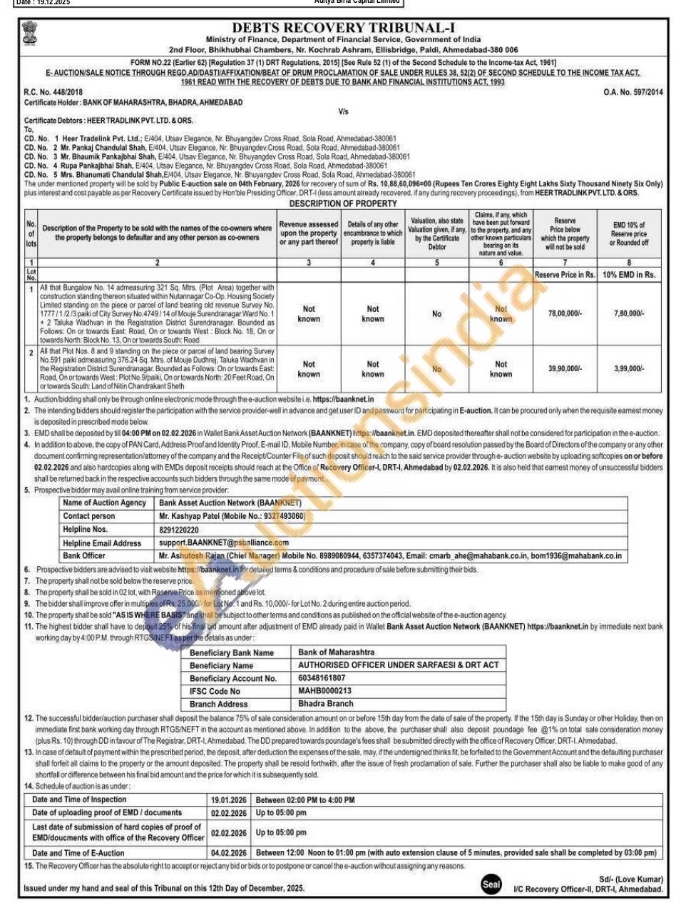 All that Plot Nos. 8 and 9 standing on the piece or parcel of land bearing Survey No.591 palki admeasuring 376.24 Sq Mrs. of Mouje Dudhrej, Taluka Wadhvan in the Registration District Surendranagar Bounded das as Follo Follows. On or towards East: Road. On or towards West: Plot No paiki, On or towards North 20 Feet Road. On or towards South: Land of Nitin Chandrakant Shelth