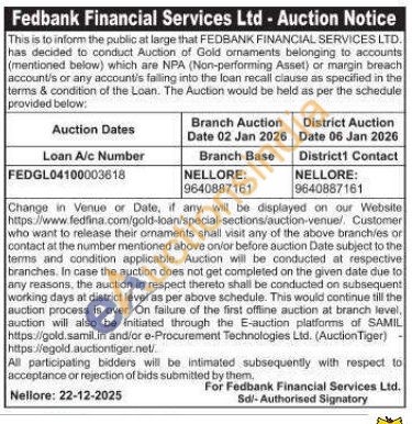 Fedbank Financial Services Ltd Gold Auctions Auction in Visakhapatnam